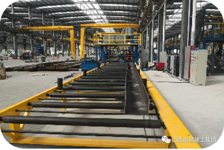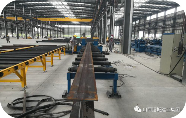 通過(guò)輥軸從組焊一體機(jī)輸送來(lái)已焊接成型的H型鋼,由矯正機(jī)將成型的H型鋼進(jìn)行矯正,以達(dá)到技術(shù)要求,通過(guò)行車(chē)和地坪車(chē)將矯正后的H型鋼送至下道工序---成品加工拋丸除銹。