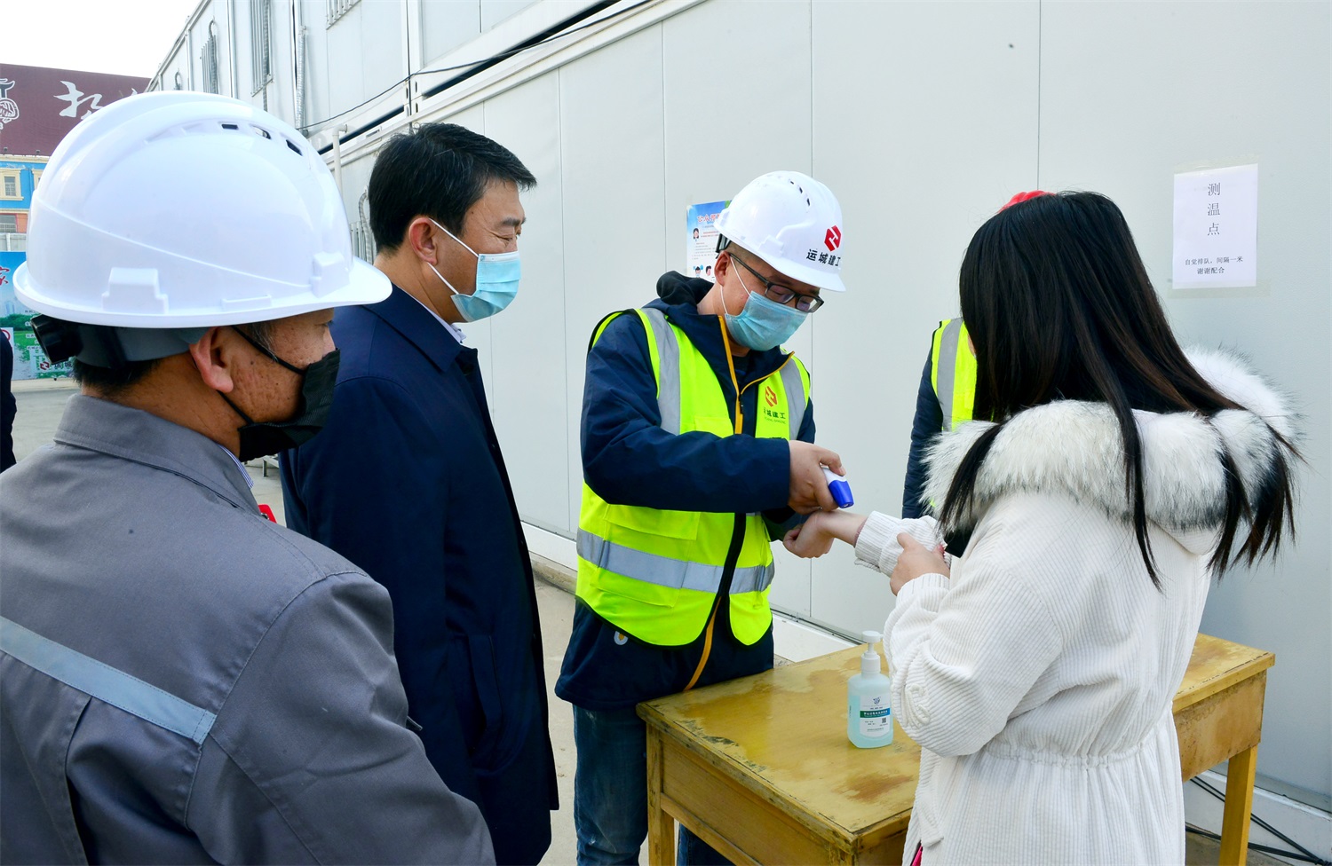 在項目一線,崔元斌認真查看疫情防控措施落實情況,詳細了解項目復(fù)工復(fù)產(chǎn)和建設(shè)情況,對項目在疫情防控中取得的成效給予肯定。