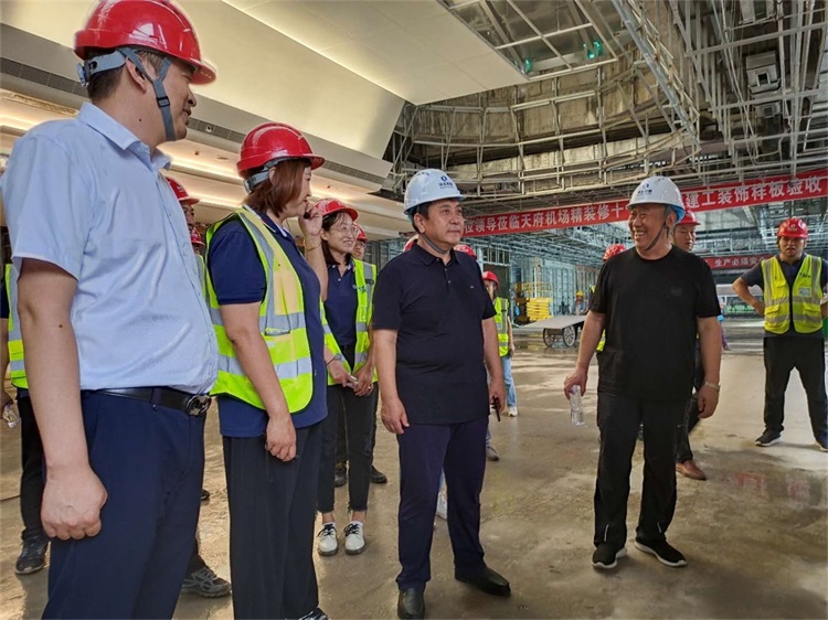 8月12日上午,華兆控股董事長兼總經(jīng)理牛正澤冒著風(fēng)雨蒞臨我公司承建的成都天府國際機(jī)場(chǎng)工程調(diào)研項(xiàng)目建設(shè)情況。華兆裝飾公司副經(jīng)理李強(qiáng)、徐金,裝飾分公司副經(jīng)理劉波璇陪同調(diào)研。