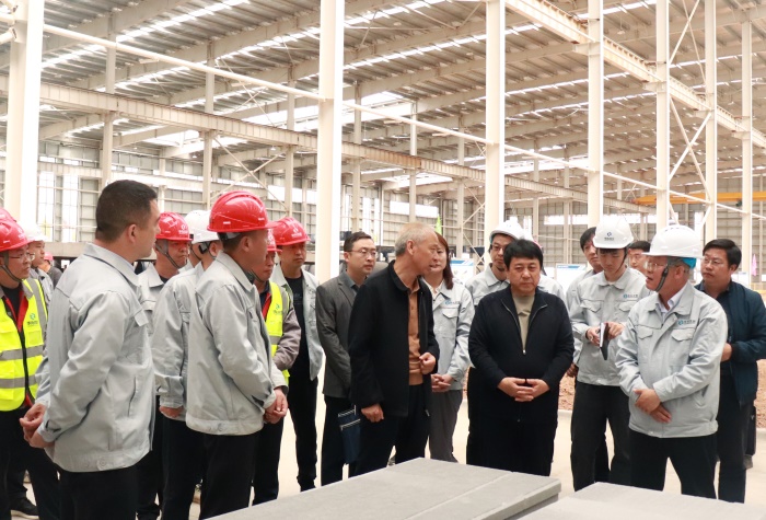 在華兆住工,牛正澤董事長(zhǎng)一行實(shí)地察看了華兆住工、尾礦資源綜合利用項(xiàng)目現(xiàn)場(chǎng),詳細(xì)了解項(xiàng)目建設(shè)、人員配備、設(shè)備安裝等情況。