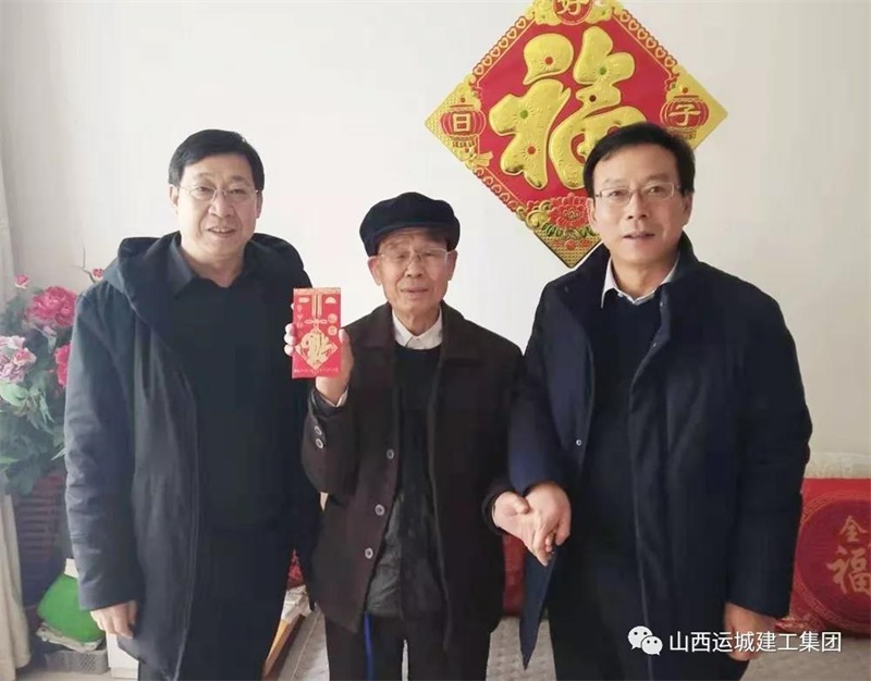 寒冬送暖,臘月傳情。在新春佳節(jié)來臨之際,運(yùn)城建工黨委班子心系離退休老黨員、老領(lǐng)導(dǎo)、老同志和困難職工,為使他們度過一個(gè)歡樂祥和的春節(jié),1月21日,受黨委書記牛正澤同志委托,公司董事長(zhǎng)王立平、黨委副書記侯占平、總經(jīng)理王哲波走訪慰問離退休老黨員、老領(lǐng)導(dǎo)、老同志和困難職工,向他們致以新春的祝福和問候。