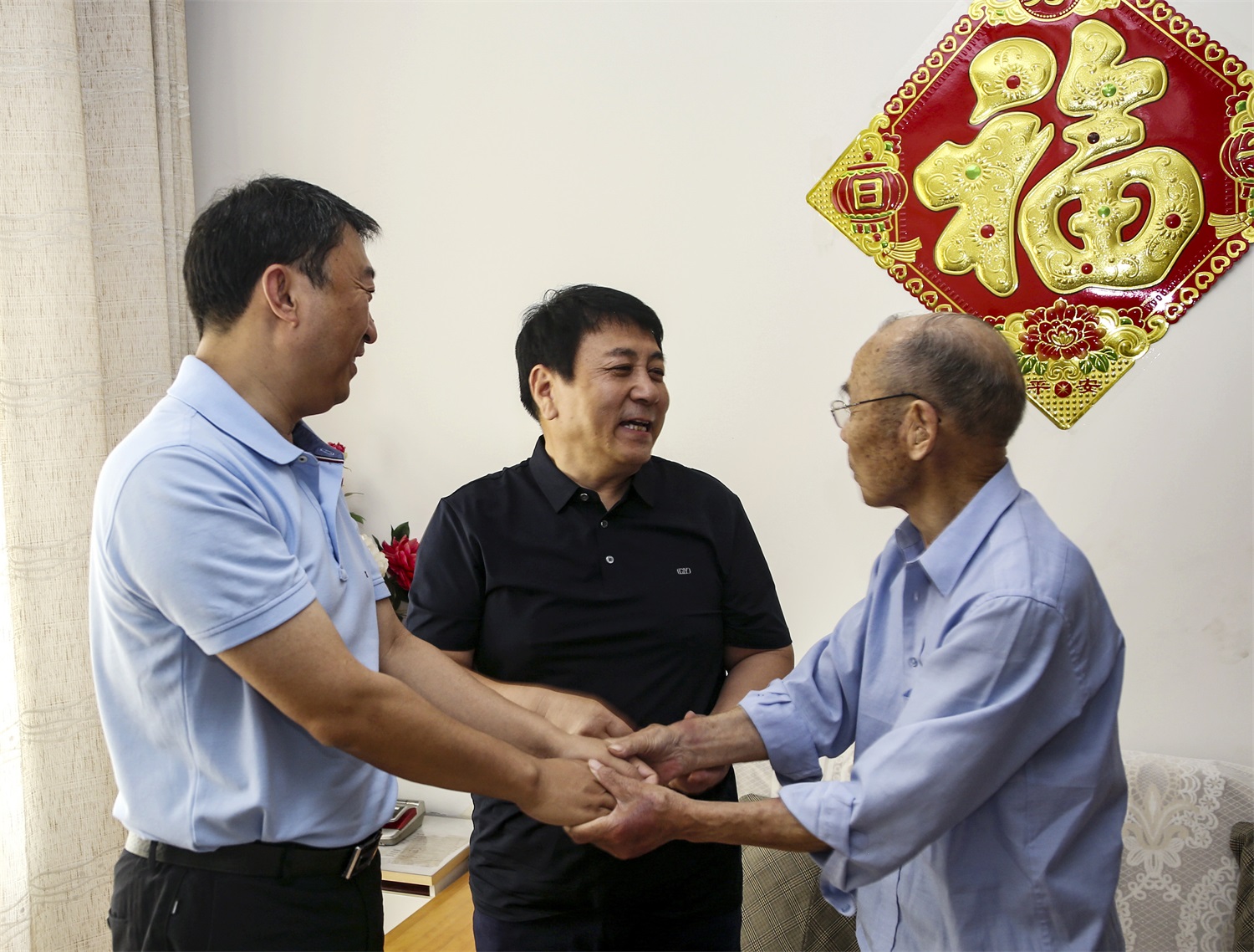 每到一家,牛正澤和王哲波都與他們促膝交談,關(guān)切詢問他們的身體狀況、生活情況和存在的困難,感謝他們?yōu)楣景l(fā)展作出的貢獻,并向老同志們介紹近年來公司發(fā)展情況及黨建工作情況。同時,希望他們保重身體,以豐富的經(jīng)驗和飽滿的熱情繼續(xù)發(fā)揮余熱,關(guān)注企業(yè)發(fā)展,支持企業(yè)發(fā)展。